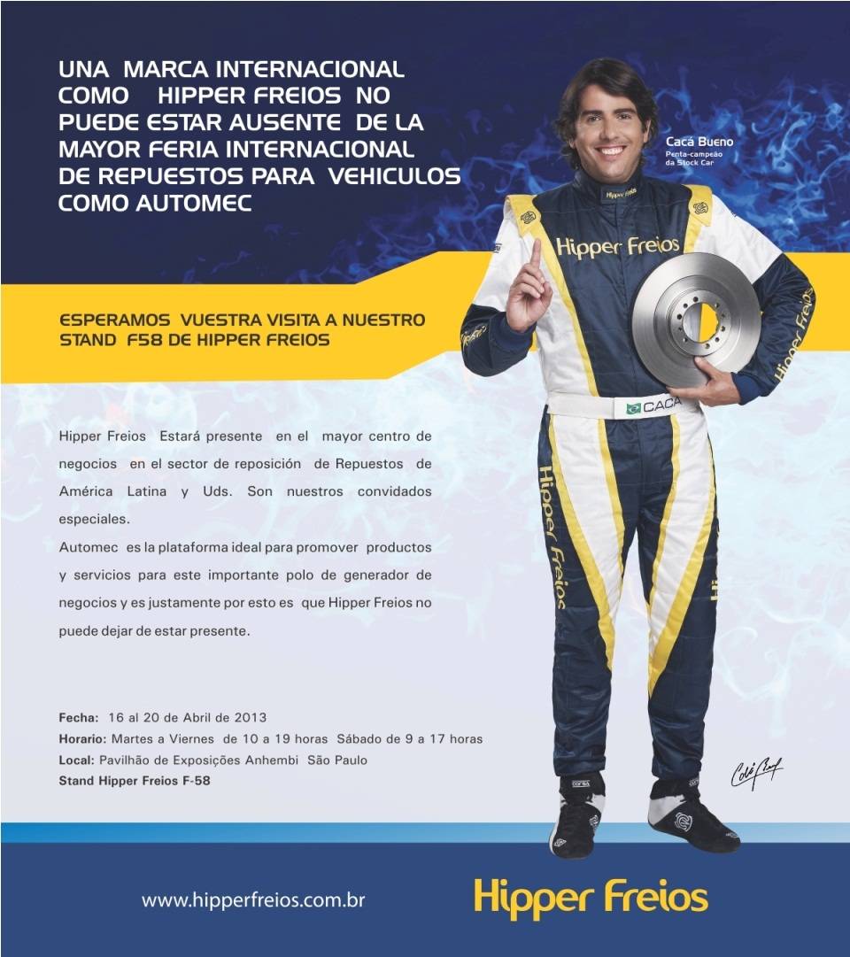 Visite o nosso Stand F58 e saiba porque a cada ano que passa a Hipper Freios vem se sagrando uma verdadeira campeã!